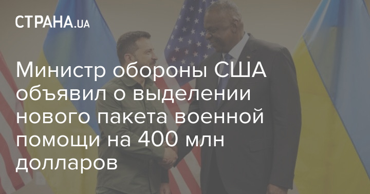"Под руководством Джо Байдена США продолжают наращивать поддержку. Сегодня я хочу объявить о выделении президентского пакета помощи на $400 млн на боеприпасы, военную технику и вооружение для Украины", - заявил Остин.
