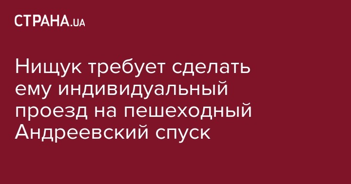 Нищук требует сделать ему индивидуальный проезд на пешеходный Андреевский спуск