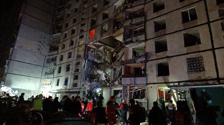 В Харькове прилетом КАБа почти полностью разрушен подъезд многоэтажки. Люди под завалами