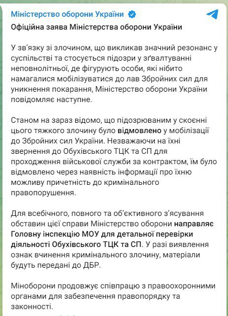 Напомним, вчера стало известно, что двое обвиняемых по резонансному делу об изнасиловании 2021 года пытаются избежать ответственности, мобилизовавшись в ВСУ. Их защита подала ходатайство о переносе очередного судебного разбирательства из-за мобилизации, предоставив копии повесток.