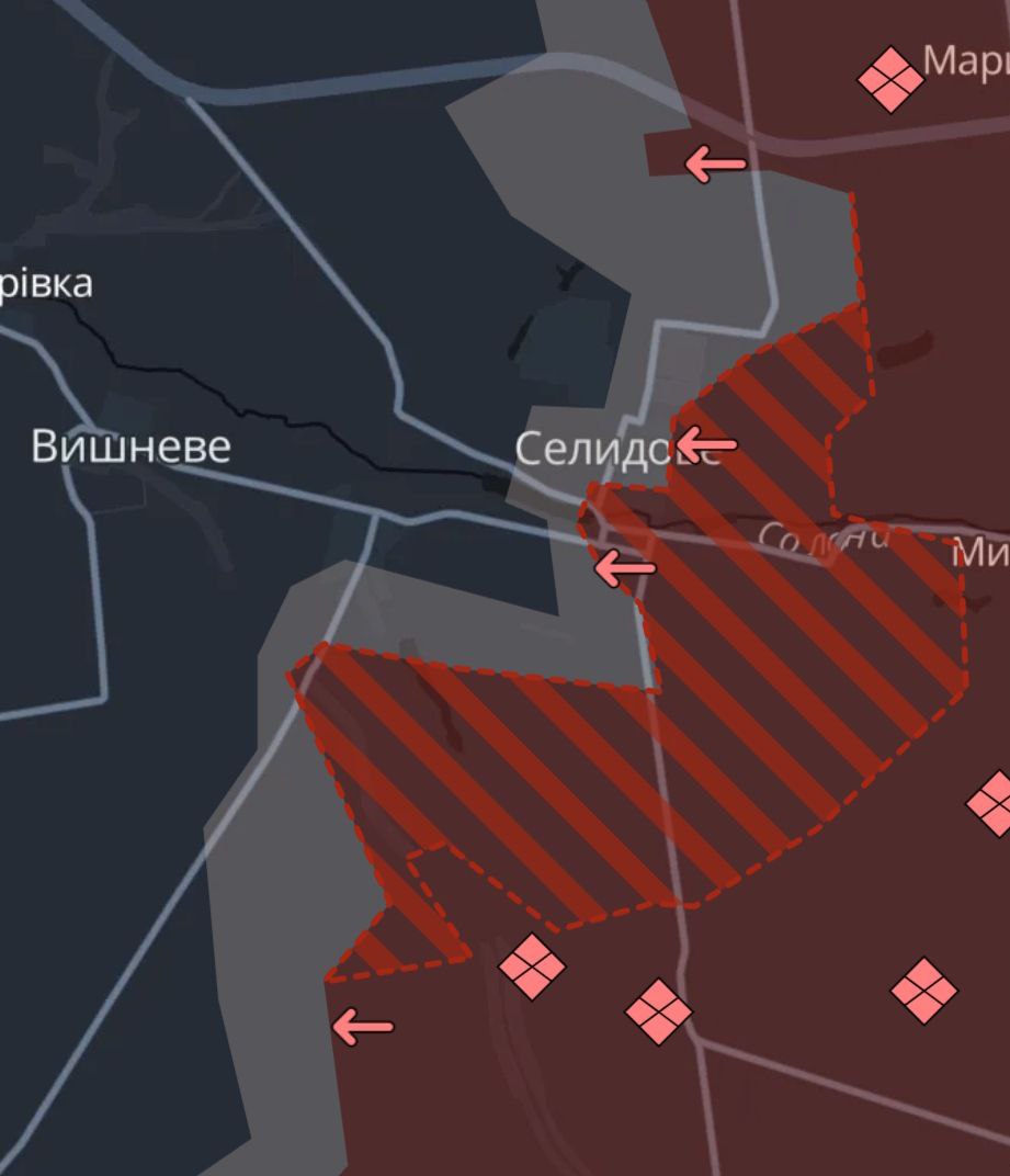 Украинский военный паблик Deep State подтверждает информацию о крупном продвижении РФ в Селидово и к югу от города.