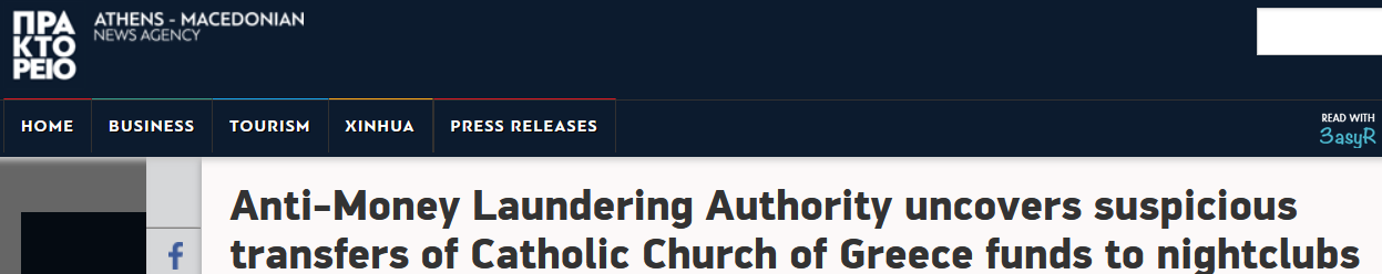 В Греции священнослужители вложили около трех миллионов евро из казны Католической церкви в ночные клубы.