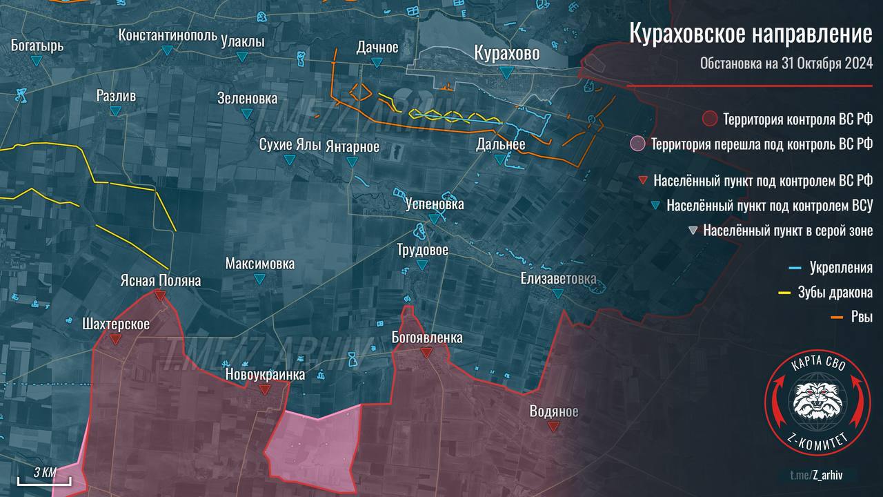 Россияне же в своих картах утверждают, что захватили уже полностью и Кураховку, и соседние Волченку и Александрополь.