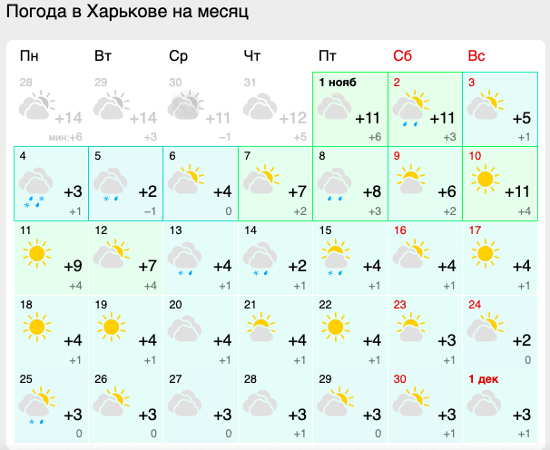 Харьков в начале ноября тоже зальет дождями, но в течение месяца ожидаются шесть погожих солнечных дней. Температура воздуха резко снизится с нынешних +11.