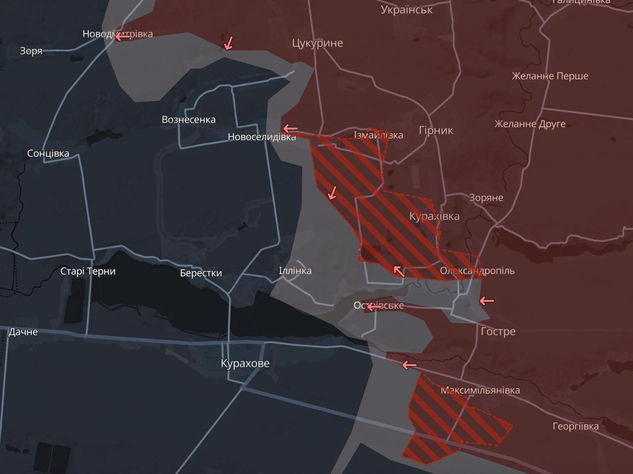 Украина этого не подтверждала. При этом боец ВСУ Мучной пишет, что "противник продавливает наши опорники в районе Новодмитровка-Вознесенка".