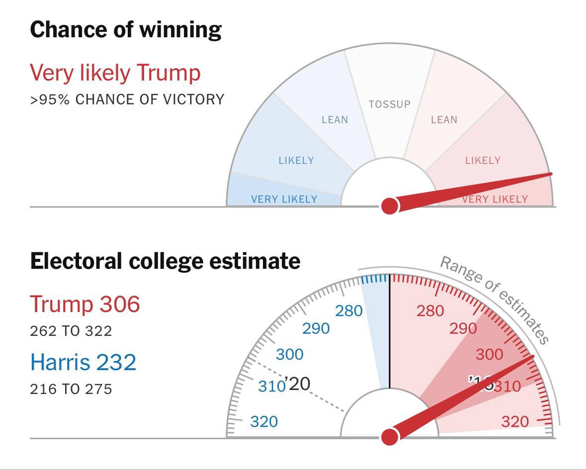 04:57 New York Times с 71-процентной вероятностью прогнозирует победу Дональда Трампа.