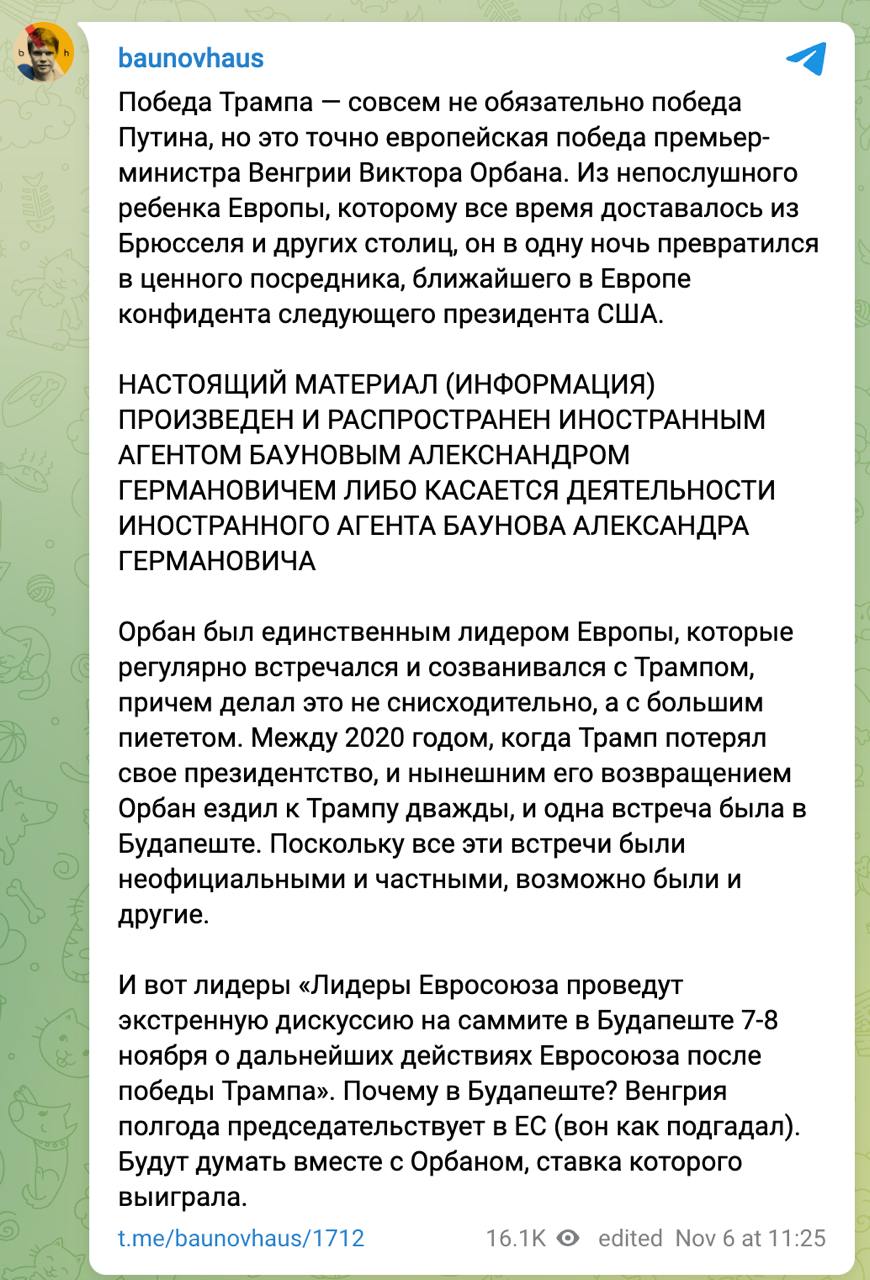 18.53 Орбан требует изменить стратегию ЕС по Украине из-за победы Трампа, сообщает Deutsche Welle.