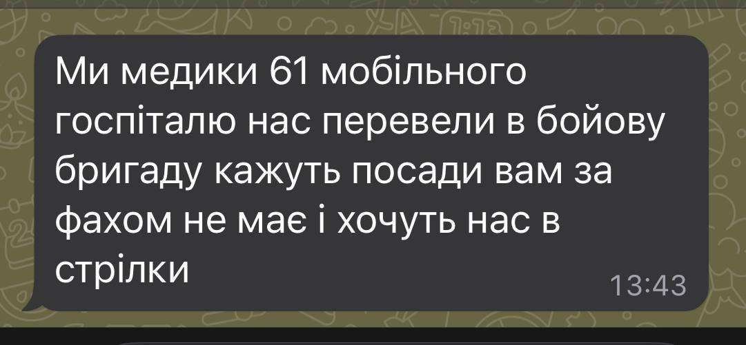 14.51 Перевод боевых медиков и других специалистов, в частности, связистов, в пехоту продолжается. Об этом заявляет нардеп Марьяна Безуглая и публикует соответствующие заявления.