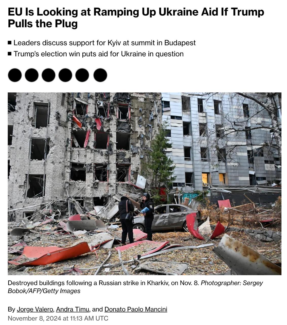 Также один из участников вчерашнего саммита ЕС в Будапеште заявил, что "ничто в первоначальных разговорах не предполагает масштабной смены тактики" по Украине при Трампе.