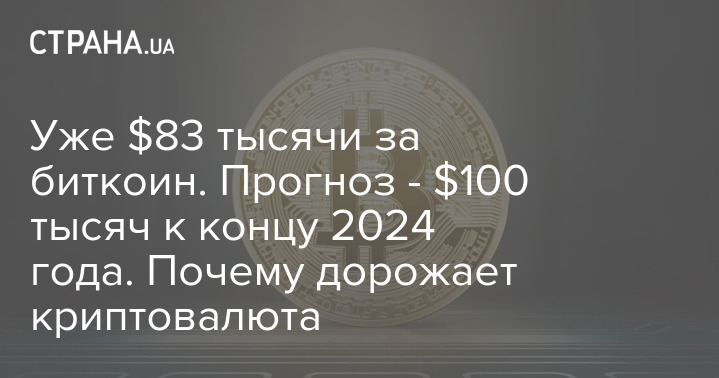 Курс биткоина растет сейчас очень быстрыми темпами. Если в конце прошлой недели он достиг $80 тысяч, то новую начал с подорожания до $83 тысяч.
