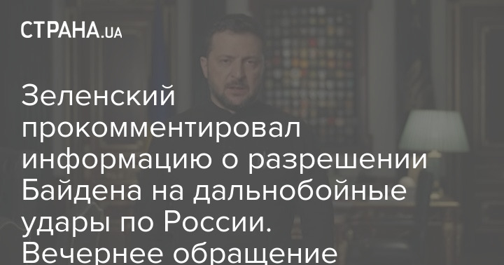 Зеленский прокомментировал информацию о разрешении Байдена на дальнобойные удары по России. Вечернее обращение
