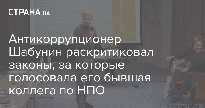 Глава неправительственной организации (НПО) Центр по противодействию коррупции Виталий Шабунин назвал два принятых в последнее время Верховной Радой законов "потаканием коррупции". При этом за оба закона голосовала его соратница, ранее длительное время работавшая в ЦПК на руководящих должностях, а ныне глава парламентского комитета по вопросам антикоррупционной политики Анастасия Радина.