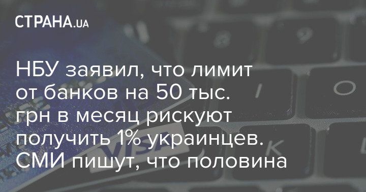 Национальный банк Украины сообщает, что новый лимит от банков на 50 тысяч гривен в месяц рискуют получить 1% украинцев. СМИ утверждают, что половина граждан.