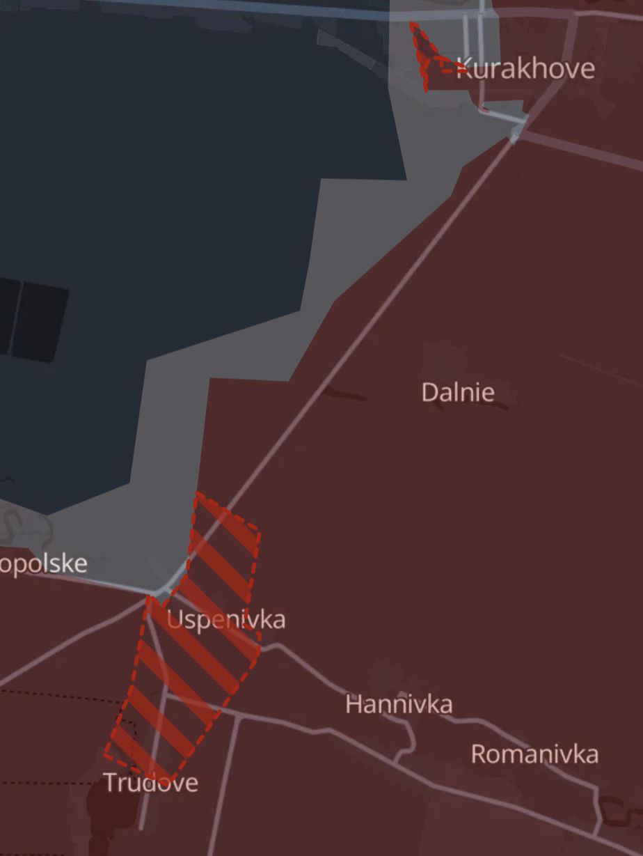 Также РФ окончательно захватила Успеновку и весь "мешок" к югу от Курахово.