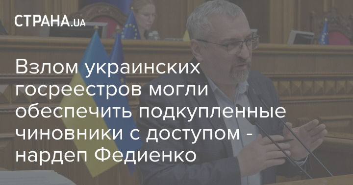 Взлом украинских госреестров могли обеспечить подкупленные чиновники с доступом - нардеп Федиенко
