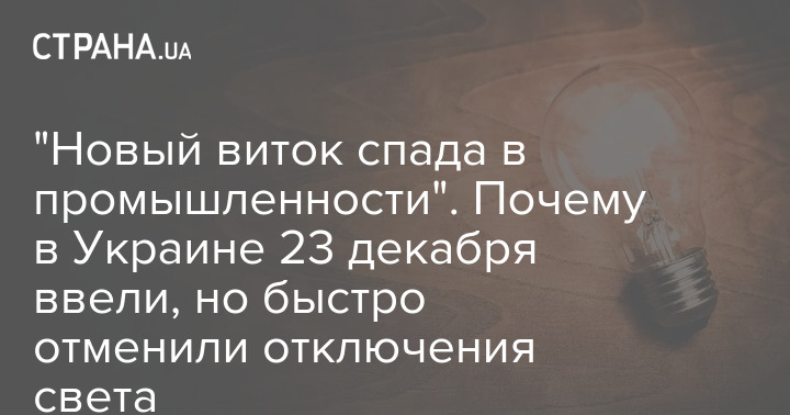 "Страна" уже писала об отключениях электроэнергии по новым графикам. Их ввели с 16 декабря. Но быстро отменили - ситуация в энергосистеме резко стабилизировалась, и особых перебоев со светом в последние дни не было.