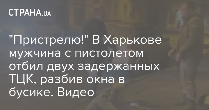 В областном центре Харьковщины неизвестный мужчина пистолетом выбил окно в "мобилизационном" микроавтобусе, куда ранее военкомы затолкали двух горожан.