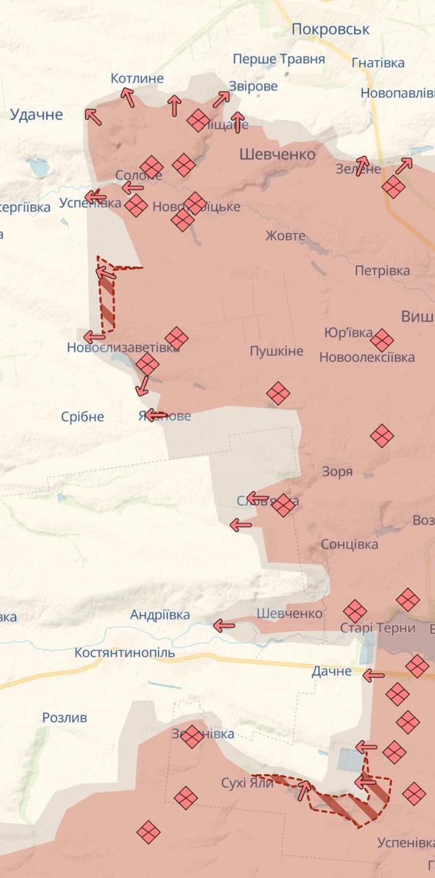 22.46 Россияне в последние несколько дней имели успех в районе села Котлино к западу от Покровска, сообщает Deep State.