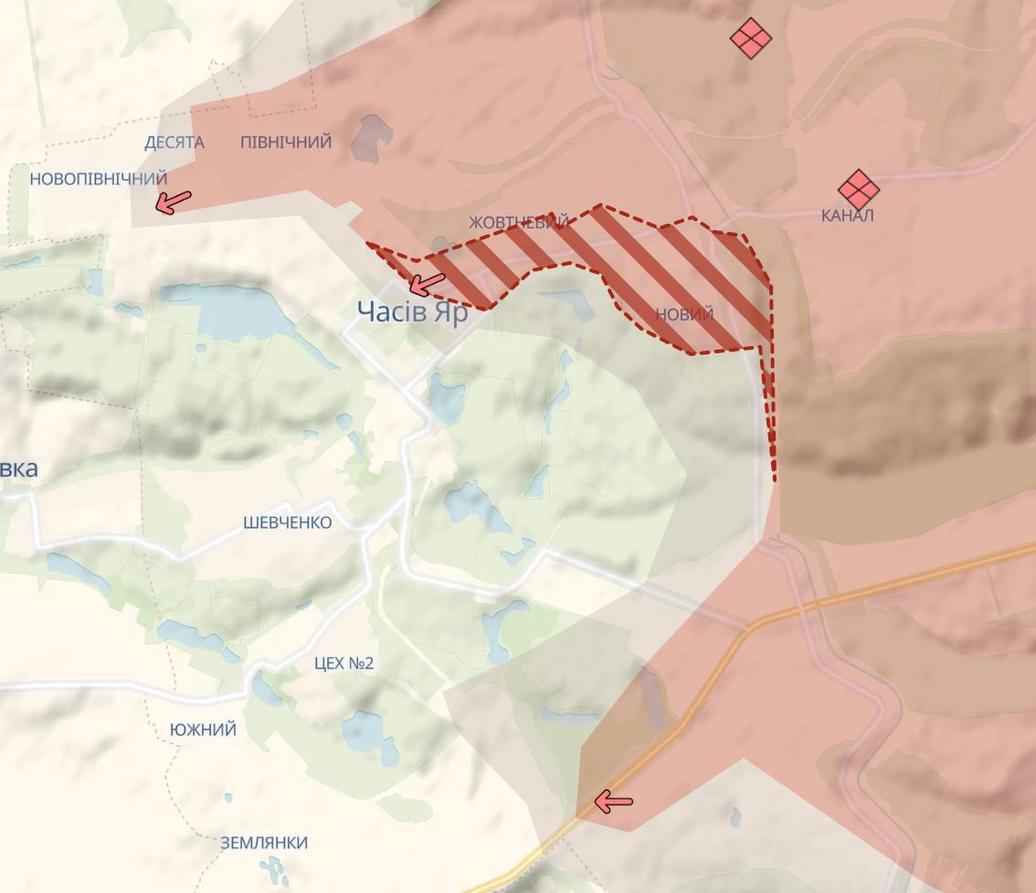 За минувшие же сутки армия РФ продвинулась в Часовом Яру - захватили район Новый, продвинулась в Октябрьском и центре города.