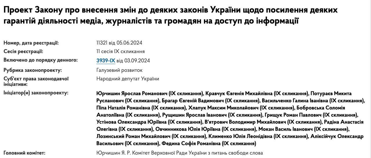 Соответствующий законопроект №11 321, автором которого стал глава комитета по свободе слова Ярослава Юрчишина, был принят парламентом 14 января.