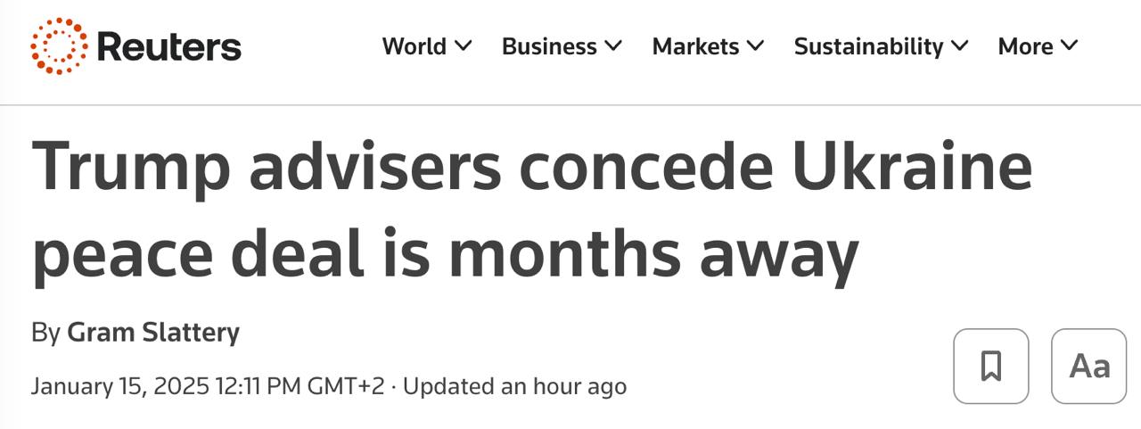 Советники  новоизбранного президента США Дональда Трампа "признают, что на урегулирование войны в Украине уйдут месяцы или даже больше времени".