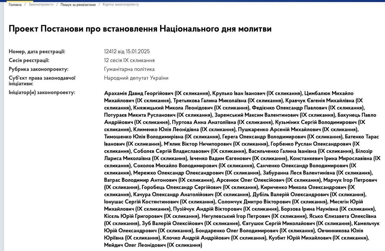 Члены партии "Слуга народа" предлагают сделать 24 февраля, дату начала полномасштабного вторжения РФ, Национальным днем молитвы. Соответствующий законопроект внесла в Верховную Раду группа депутатов во главе с Давидом Арахамией.