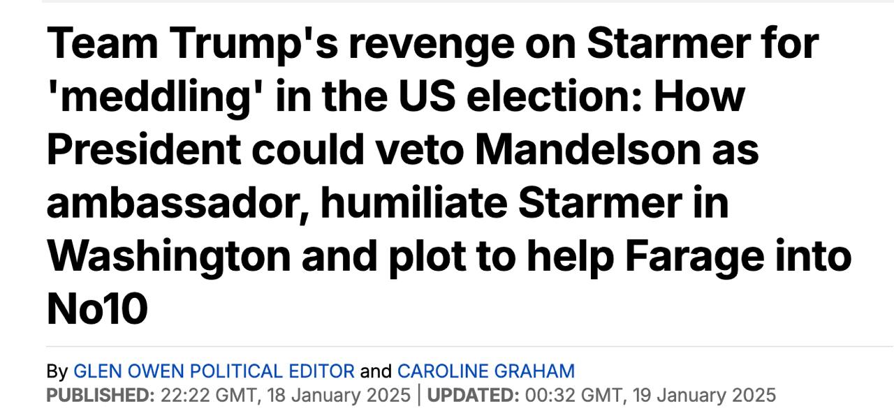 Это происходит "в отместку" премьеру Киру Стармеру за "лейбористы вели кампанию за его оппонента Камалу Харрис".