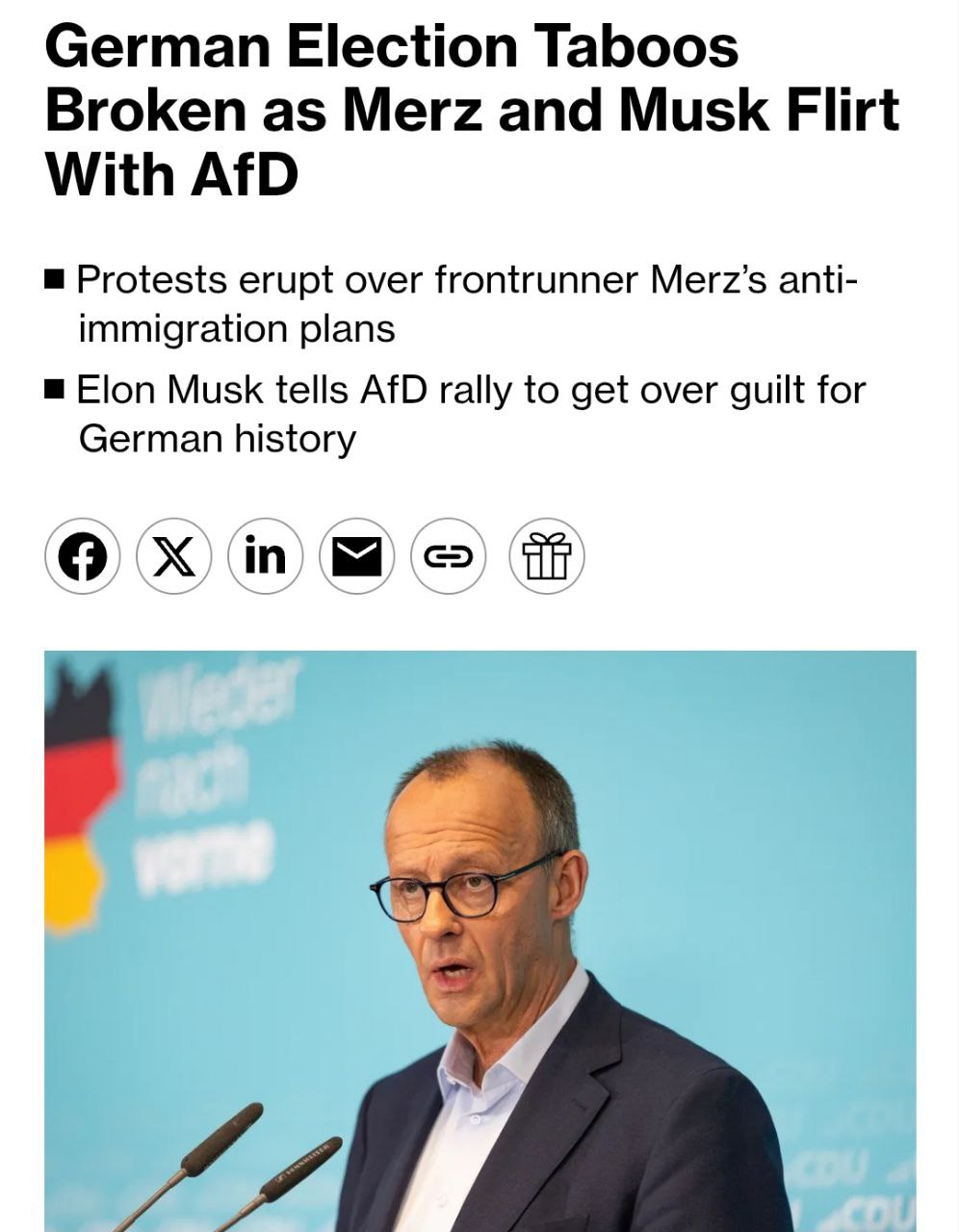 Фаворит предстоящих в конце февраля выборов в Германии Фридрих Мерц из ХДС "флиртует" с ультраправой "Альтернативой для Германии" (АдГ).