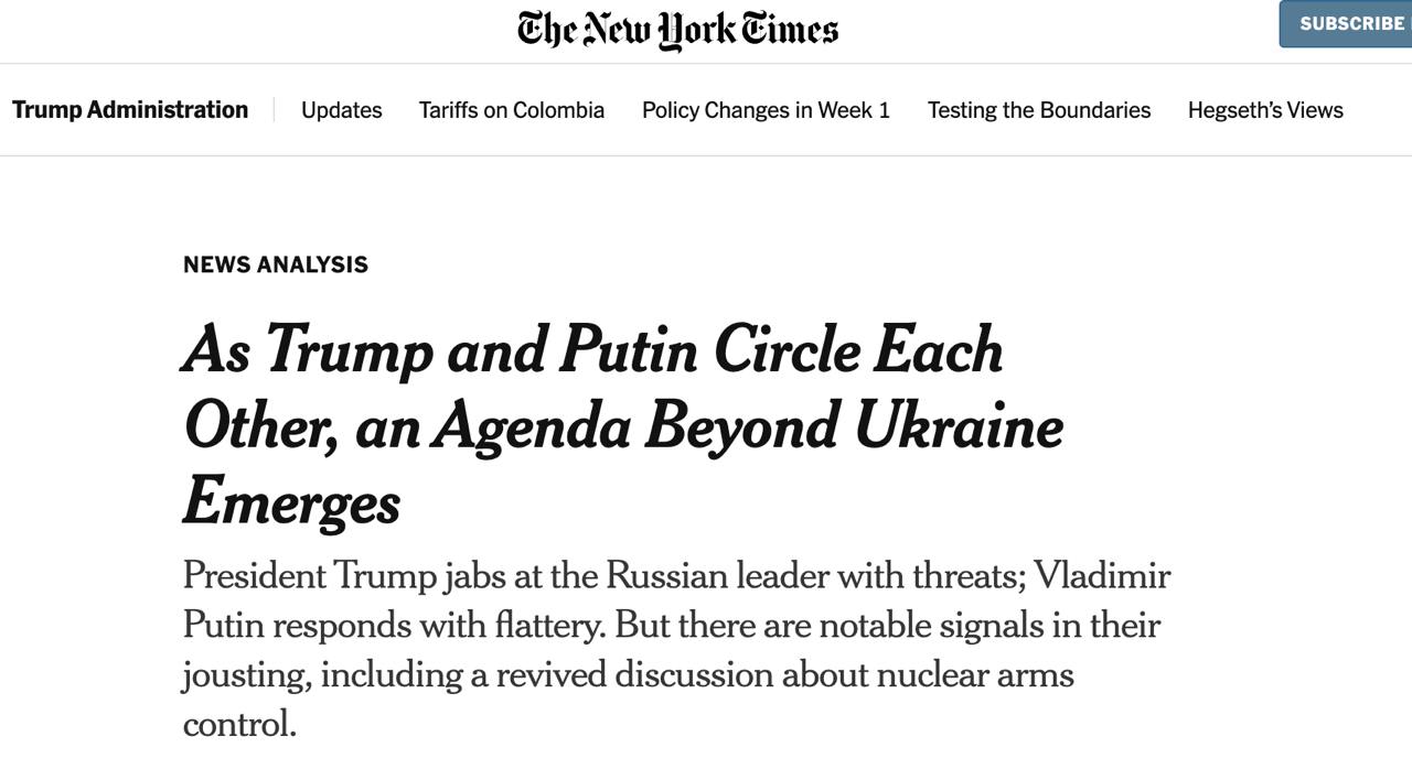 "Однако Трамп, похоже, открыт для более широких переговоров, а это именно то, чего хотел бы Путин, поскольку это может позволить ему пойти на этот компромисс", - пишет NYT.