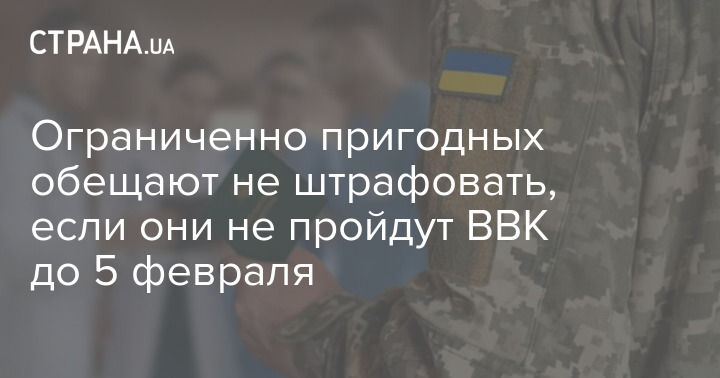 ТЦК и СП не будут штрафовать и объявлять в розыск ограниченно пригодных к военной службе граждан, которые не успеют повторно пройти военно-врачебную комиссию до 5 февраля. Военкоматам отправят соответствующую директиву.