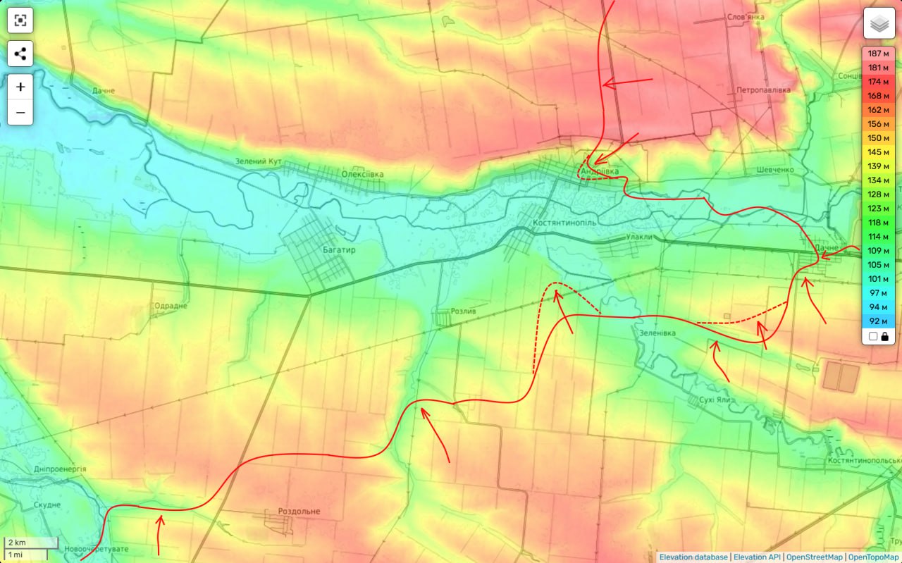 Сейчас город утратил функцию снабжения значительной части фронта для ВСУ. Россияне находятся в пределах досягаемости артиллерии и беспилотников к важнейшей автомагистрали с Днепра, и большинство автомобилей теперь объезжают город по проселочным дорогам.