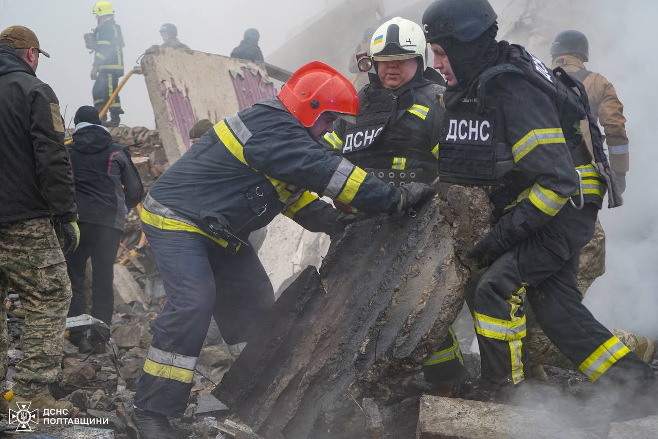 Последствия удара по жилой многоэтажке в Полтаве. Фото: ГСЧС