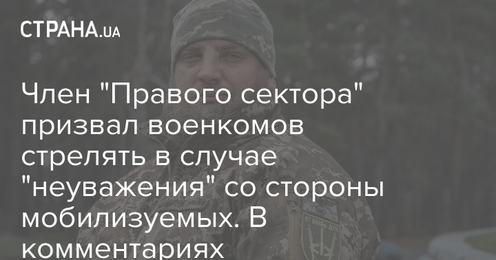 Член Добровольческого украинского корпуса "Правый сектор" Борис Овчаров ("Дончанин") призвал военкомов стрелять "без предупреждения" в случае "неуважения" со стороны мобилизуемых.