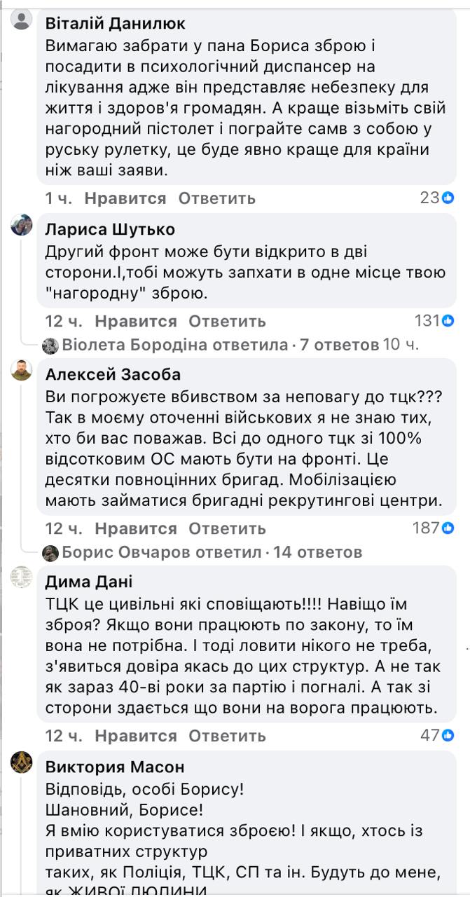 Также Овчаров потребовал вооружать местные патрули ТЦК и СП.