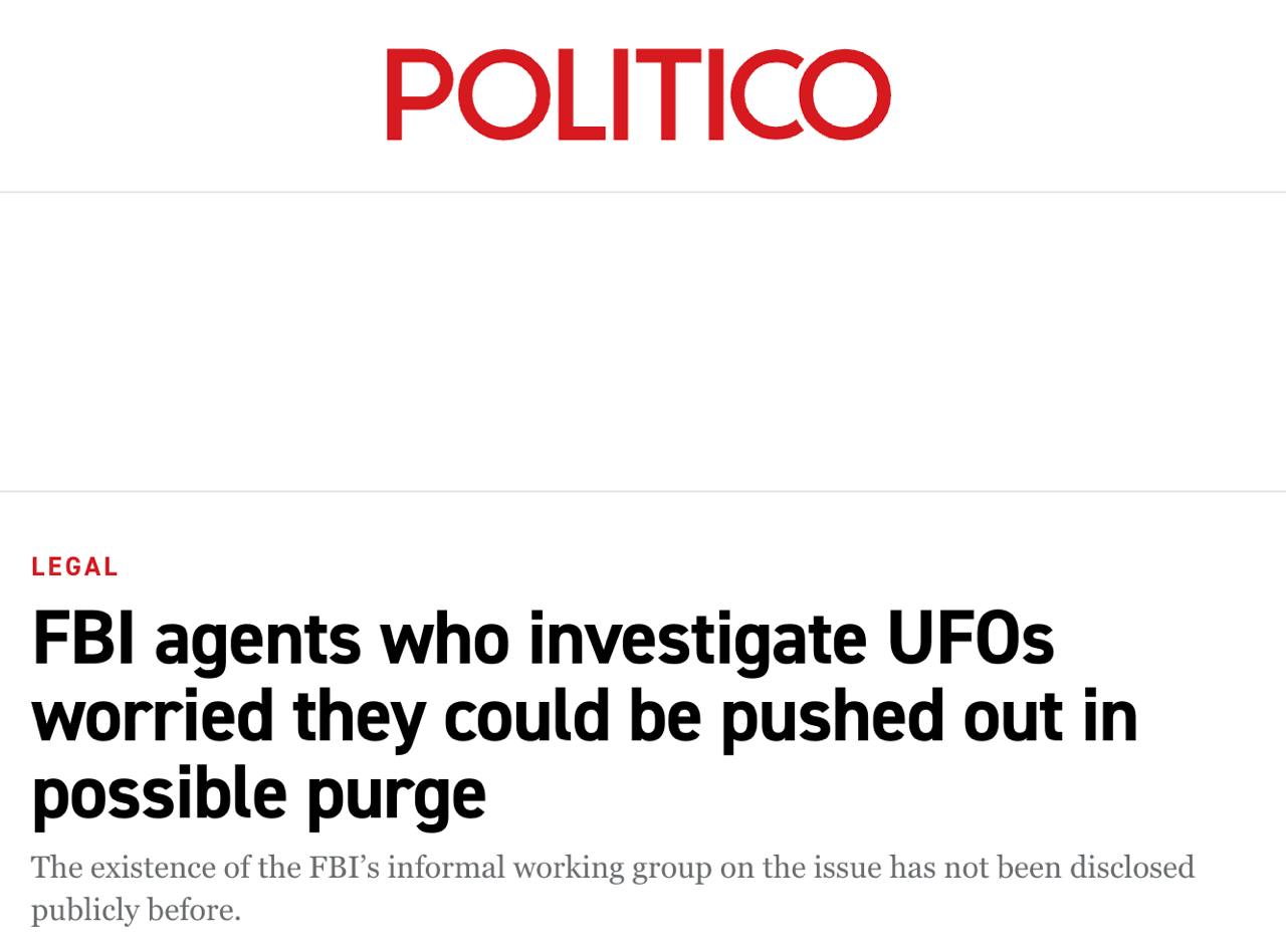 В ФБР есть секретная группа, расследующая всплеск неопознанных аномальных явлений, как правительство США называет НЛО. Ее участники обеспокоены тем, что могут потерять работу в результате возможной чистки ФБР, нацеленной на должностных лиц, которые расследовали штурм Капитолия сторонниками Дональда Трампа.
