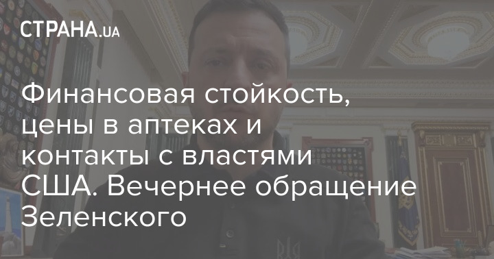 Финансовая стойкость, цены в аптеках и контакты с властями США. Вечернее обращение Зеленского