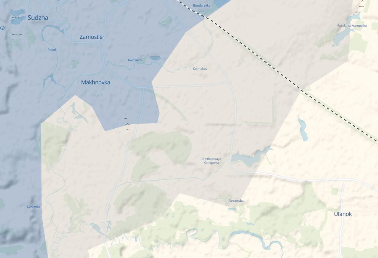 Российские военные телеграм-каналы сообщают об атаке ВСУ в направлении сел Черкасская Конопелька (некоторые российские паблики говорят о занятии подразделениями ВСУ части этой деревни, другие пишут, что украинские силы высадили десант вблизи его и там сейчас идут бои) и Уланок. До самих Уланок, как заявляют российские телеграм-каналы, украинские штурмовые группы не дошли, будучи остановлены российскими войсками, и заняли ряд посадок, за которые бои продолжаются до сих пор. Россияне заявляют о купировании попыток перебросить к этим группам подкрепления и утверждают, что бои сейчас позиционные. О новых крупных атаках ВСУ сегодня информации не поступало.