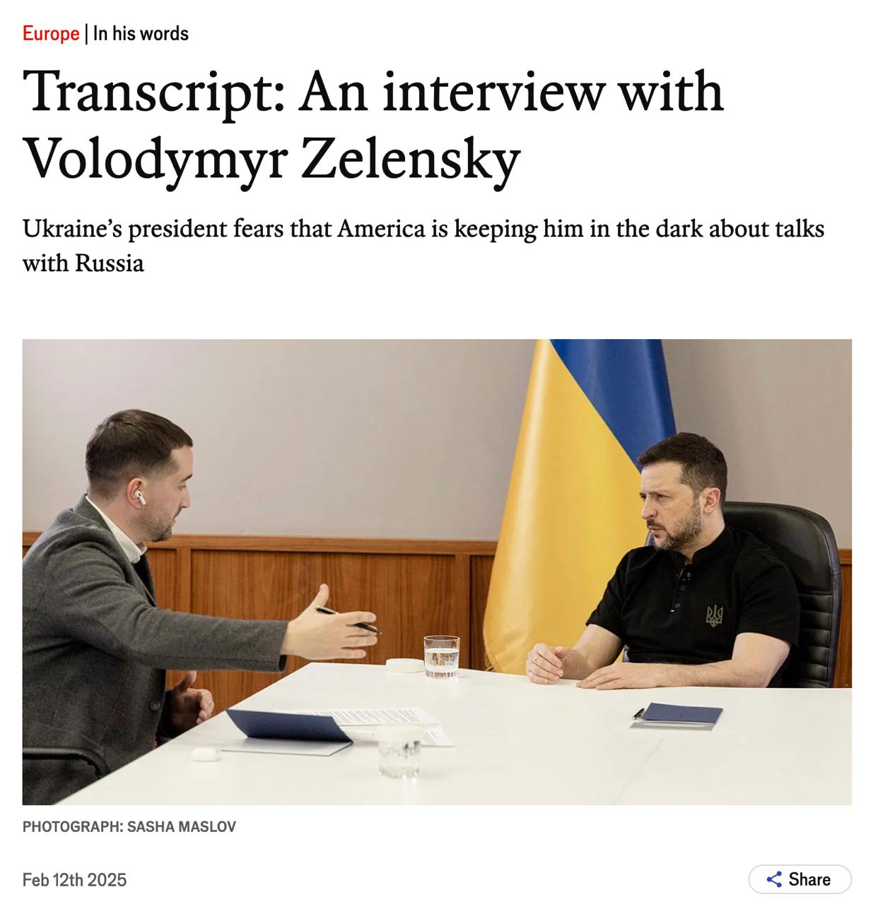 Об этом заявил президент Украины Владимир Зеленский в интервью британскому журналу The Economist.