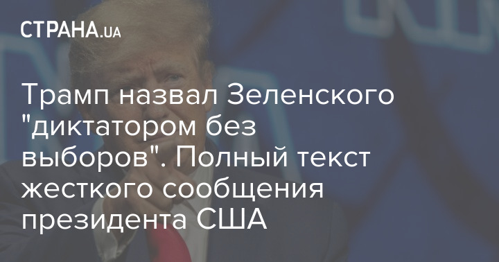 Президент США Дональд Трамп назвал президента Украины Владимира Зеленского "диктатором без выборов" и призвал скорее провести выборы, "иначе у него не останется страны".
