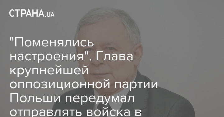 Председатель крупнейшей польской оппозиционной партии "Право и справедливость" (PiS) Ярослав Качиньский, ранее выступавший за отправку польских военных в Украину, изменил свое мнение на противоположное, сославшись на смену настроений в польском обществе.