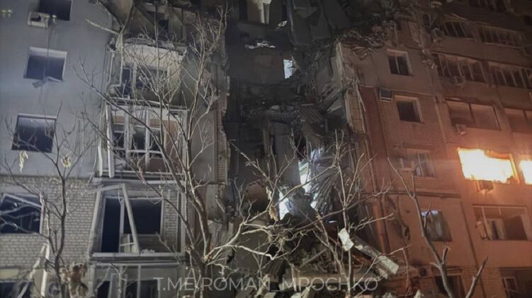 Сегодня ночью россияне ударили управляемой авиабомбой по жилому десятиэтажному дому. Разрушены пятнадцать квартир – с 1 по 10 этаж одного из подъездов. Пострадали шесть человек.