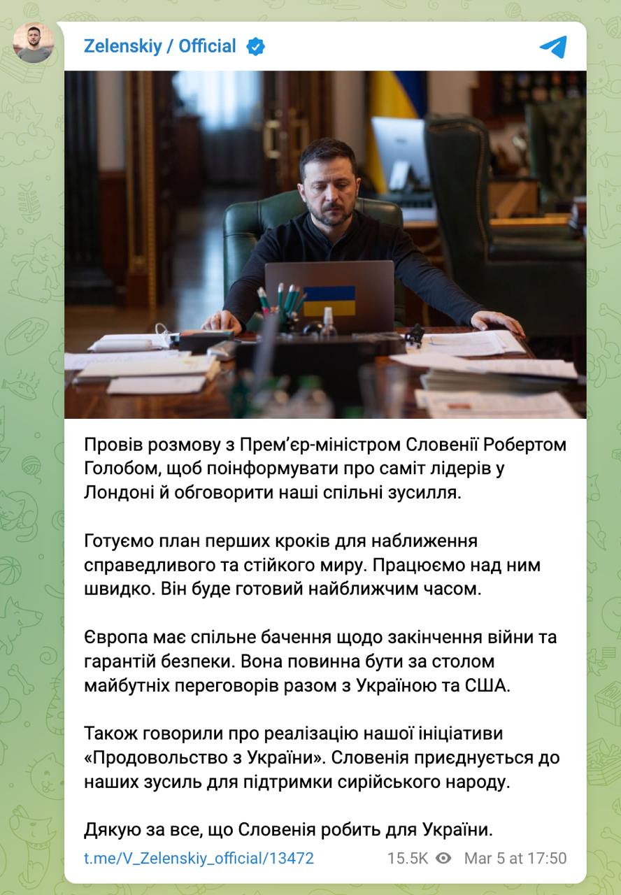А Владимир Зеленский сообщил в своем телеграм-канале о работе над планом окончания войны.