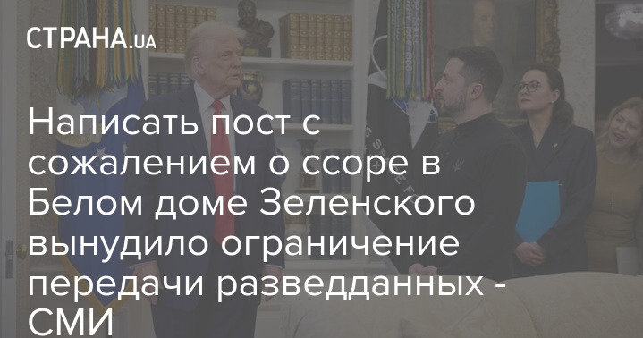 Опубликовать в своих соцсетях пост с сожалением о перепалке в Белом доме украинского президента Владимира Зеленского вынудило ограничение передачи Украине американских разведданных.