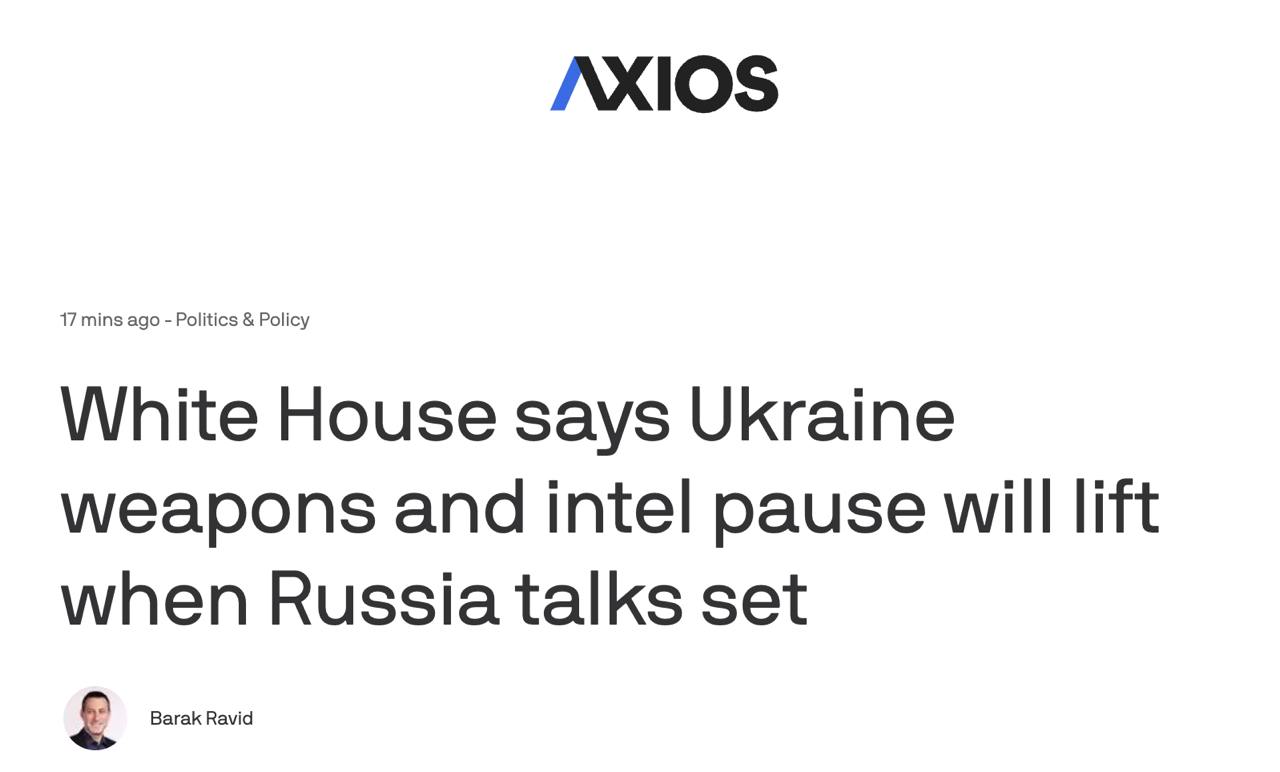 "США не будут возобновлять поставки оружия и обмен разведданными с Украиной до тех пор, пока не будет установлена дата мирных переговоров с Россией, заявил в среду советник по национальной безопасности Белого дома Майк Уолтц. Решение США приостановить военную помощь усиливает давление на Владимира Зеленского, чтобы он согласился перейти к переговорам с Россией по прекращению войны", - пишет издание.