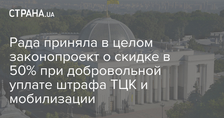 Верховная Рада приняла в целом законопроект №12 093 о скидке в 50% и закрытии административного дела при добровольной уплате штрафа ТЦК и мобилизации.
