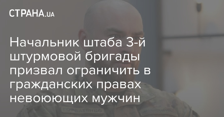 Начальник штаба 3-й отдельной штурмовой бригады Петр Горбатенко с позывным Ролло высказался об ограничении прав невоюющих мужчин.