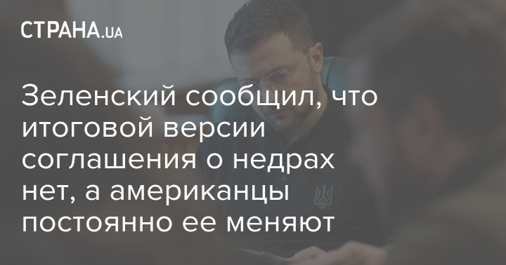 Зеленский сообщил, что итоговой версии соглашения о недрах нет, а американцы постоянно ее меняют
