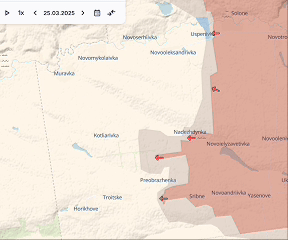 Продвижение россиян фиксирует и украинский паблик Deep State. По его данным, за последние несколько дней войска РФ заняли ряд территорий в районе Котляровки, Преображенки и Надеждинки, а также севернее, в районе Успеновки.