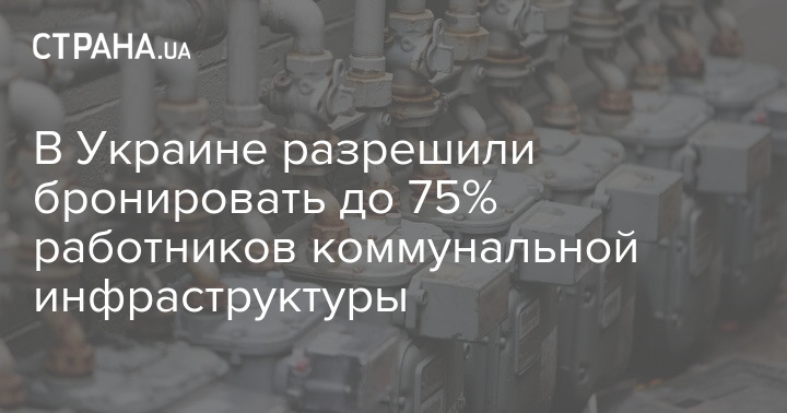 Кабинет министров Украины разрешил предприятиям, обслуживающим объекты критической инфраструктуры сектора системы жизнеобеспечения, бронировать до 75% своих работников.