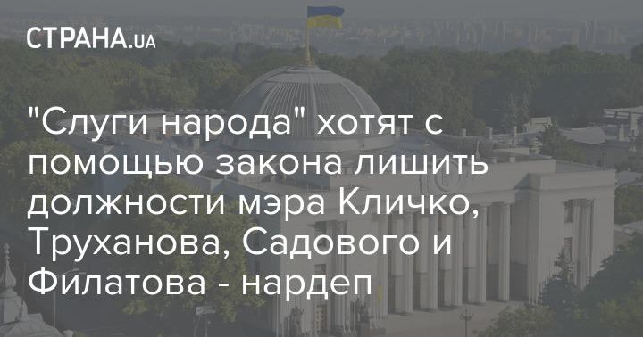 Фракция "Слуги народа" готовит новый законопроект, который лишит Виталия Кличко возможности дальше быть мэром Киева, Геннадия Труханова - мэром Одессы, Бориса Филатова - мэром Днепра, а Андрея Садового - мэром Львова.